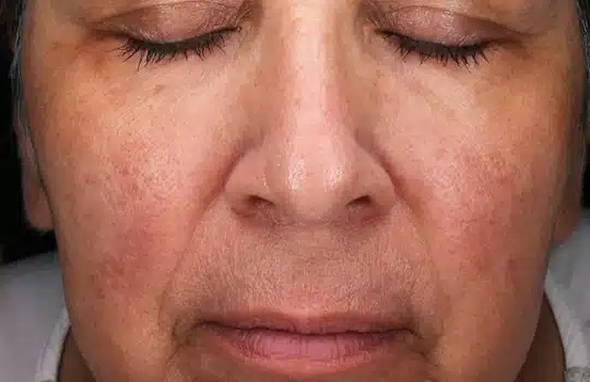 VISIA® hudanalyse bildesystem – standardvisning og visning av røde kanaler under overflaten. Individuelle resultater kan variere.